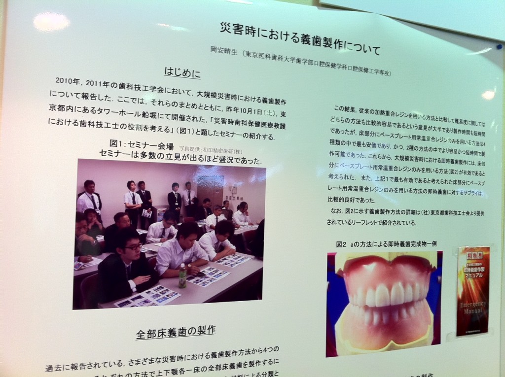 これまでのデンタルショーでは見かけなかった『緊急時の入れ歯の作り方』というものがあり、物資のない中そのようなことが可能なんだと感心しました。