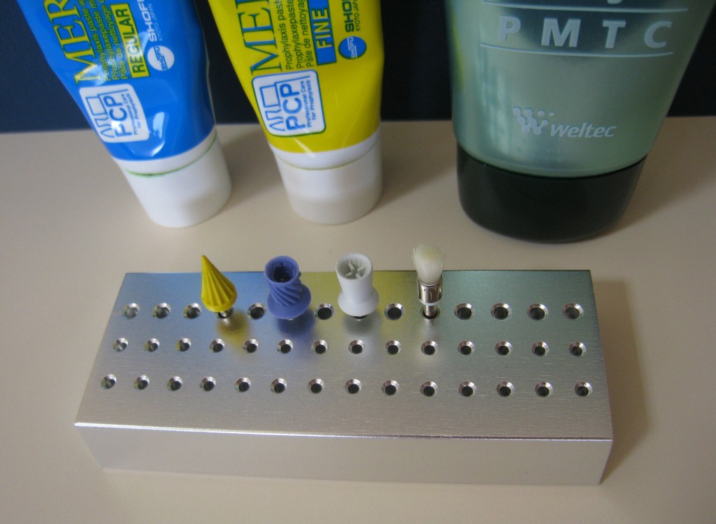 各種ブラシを使い、歯みがき剤のようなものをつけて、すみずみまで磨き上げていきます。