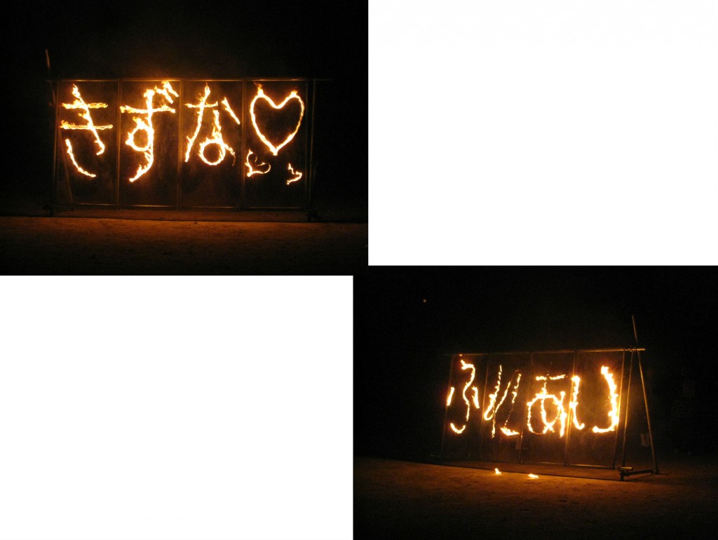 火の舞→火文字で盛り上げて、「さあ、かよ歯科クリニック&すみれクリニック協賛のスターマインだ!」となり…
