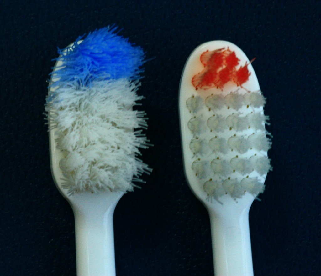 ↑↓左が使い古した歯ブラシ・右は新品の歯ブラシ