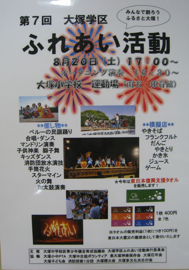 ふれあい活動 昨夜は蒲郡まつりで、花火を見ました。 夏祭りは熱い! 大塚でも今度イベントがあります。 その際、かよ歯科クリニックは1階のすみれクリニックと合同でスターマインの協賛をします。 常日頃、大塚町のみなさんにはお世話になっていますので、少しでも喜んでいただければ嬉しいです(#^.^#) 『大塚学区 ふれあい活動』 日時:8月20日(土)17:00~〈オープニング演奏16:30~〉 会場:大塚小学校運動場 〈雨天の場合は体育館〉 大塚小学校中学校の児童・学生さんによる催し物や煙火会の手筒花火、消防団放水演技などなど。 やきそば・だんご・かき氷・やきとりなどの模擬店も出店されます。 老若男女揃って出かけましょう~!(^^)!