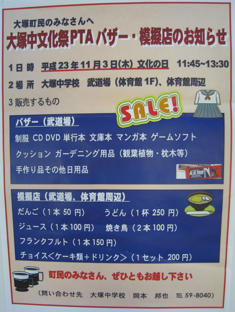 バザー 大塚中学校制服体操服・CD・DVD・文庫本・単行本・マンガ本・ゲームソフト・手作り品その他日用品