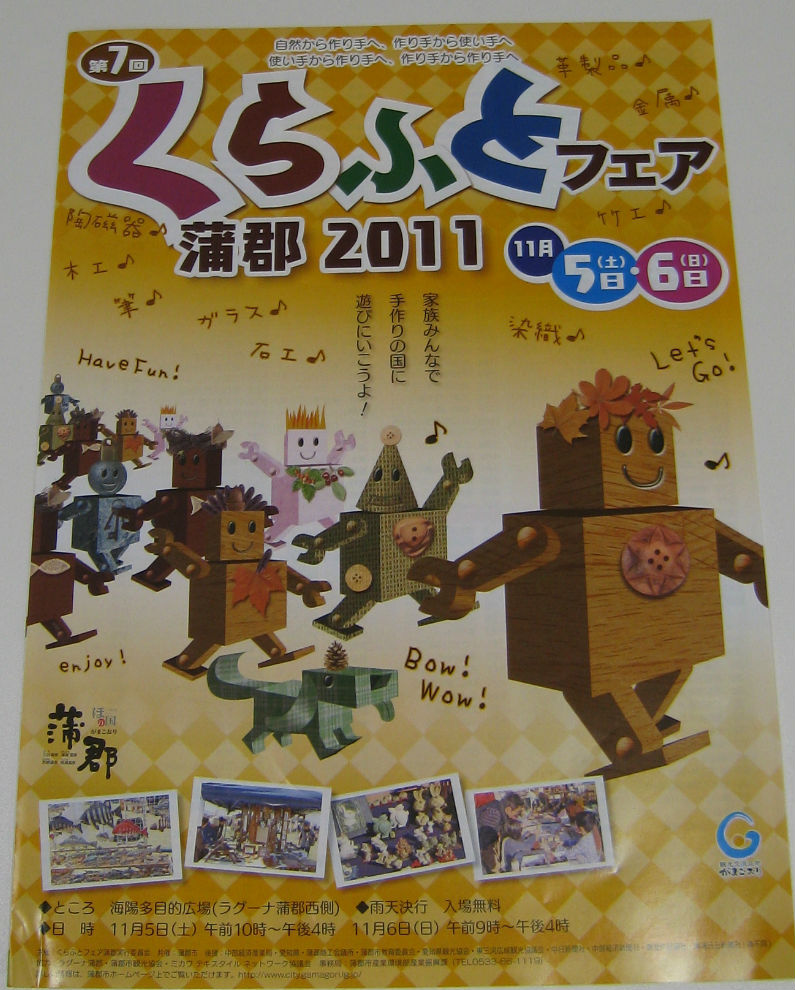 さて、何かと催し物の多い秋♪今日・明日(4・5日)に、かよ歯科クリニックからもほど近いラグーナ蒲郡の西側で『くらふとフェア蒲郡2011』が開催されます。
